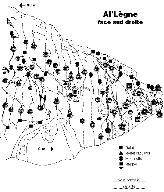 | Al'Lègne | schéma -121-126-130-134-138-143-147-151- | face Sud droite |