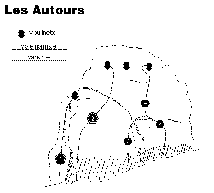 | Juste à droite de la Pulpe, un départ sur des aplats, ensuite tirer à droite jusqu'à la fissure oblique. Sortie assez bloc. |