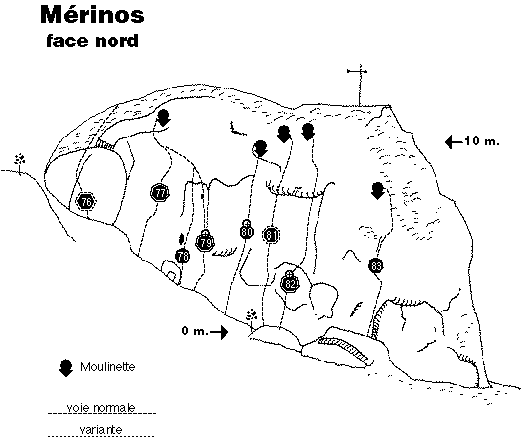 | La grande classique de l'endroit. La plus réalisable à vue dans ce secteur. Une variante de sortie existe à droite : 7b+. |